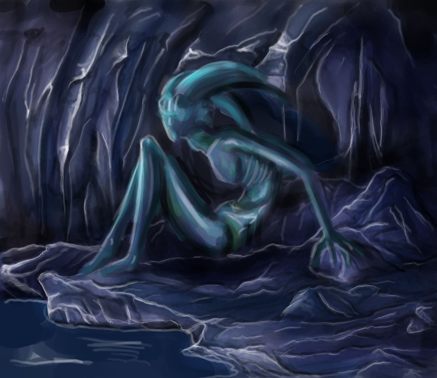 Alors voila la sirène après une heure de travail environs. La colorisation est là, mais elle n'est pas encore au point. Tout de même le dessin avance rapidement, j'en suis contente.