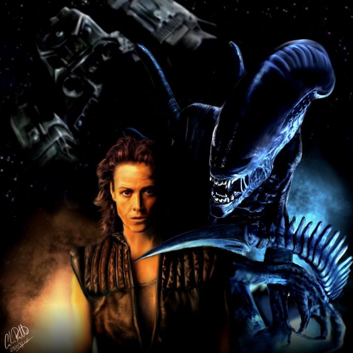 alien sigourney weaver film science fiction scifi art digital gimp création image guerriere